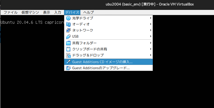 # /mnt直下にdvd用のマウントポイントとなるディレクトリ作成 sudo mkdir -p /mnt/dvd # Guest Additionsのディスクを/mnt/dvdへマウント sudo mount /dev/dvd /mnt/dvd /mnt/dvd: WARNING: device write-protected, mounted read-only.d